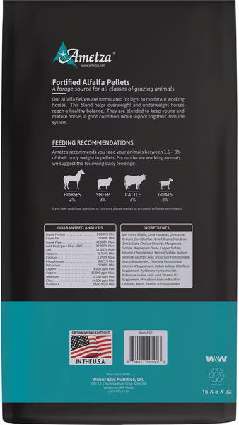 Ametza Alfalfa Hay Pelleted Feed, 1/4 Pellet, 50 lb. Bag
