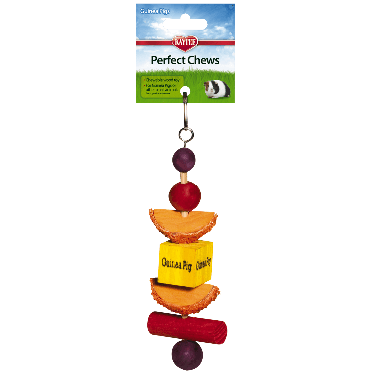 - The Perfect Chew for guinea pigs includes orange slices, wood balls, a wood log and a block in brilliant orange, red and yellow colors