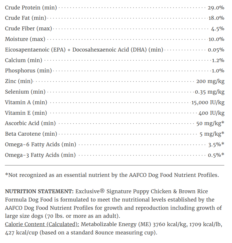 Exclusive Signature Puppy Chicken & Brown Rice Dog Food, 30 lb. Bag
