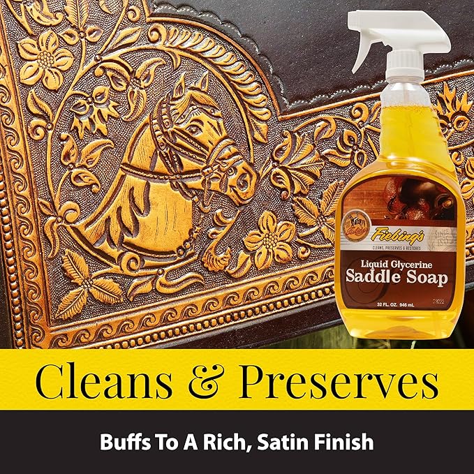 - SATIN FINISH: Experience the luxury of a rich, satin finish on your leather items with Fiebing's Liquid Glycerine Saddle Soap. As it buffs, it leaves behind a lustrous sheen, enhancing the overall appearance of your leather goods.